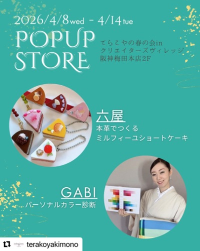 4/8(水)〜4/14(火)まで、阪神梅田本店2Fクリエイターズヴィレッジにて 「てらこやの春の会inクリエーターズヴィレッジ」が開催されます。